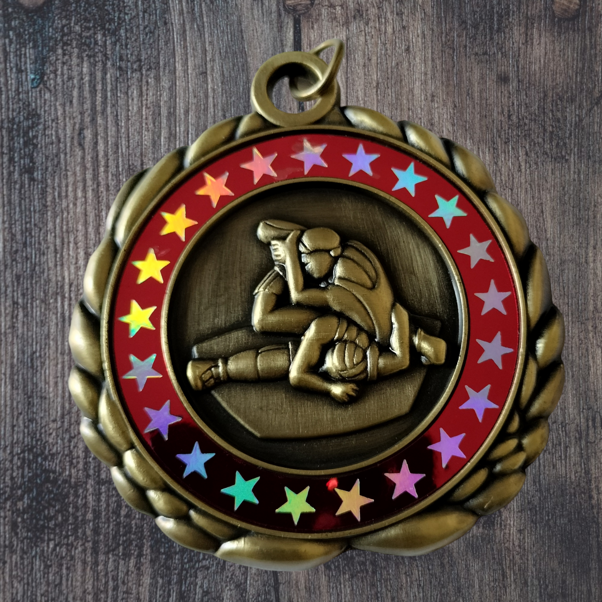 Adorn your favorite wrestling athlete with this stylish medal, featuring a star border. Perfect for showing off their hard-earned achievements, it's made of quality materials for a long-lasting finish. Celebrate like a star!