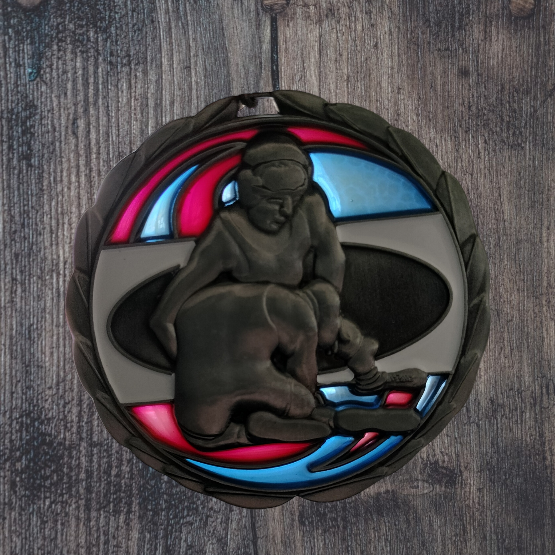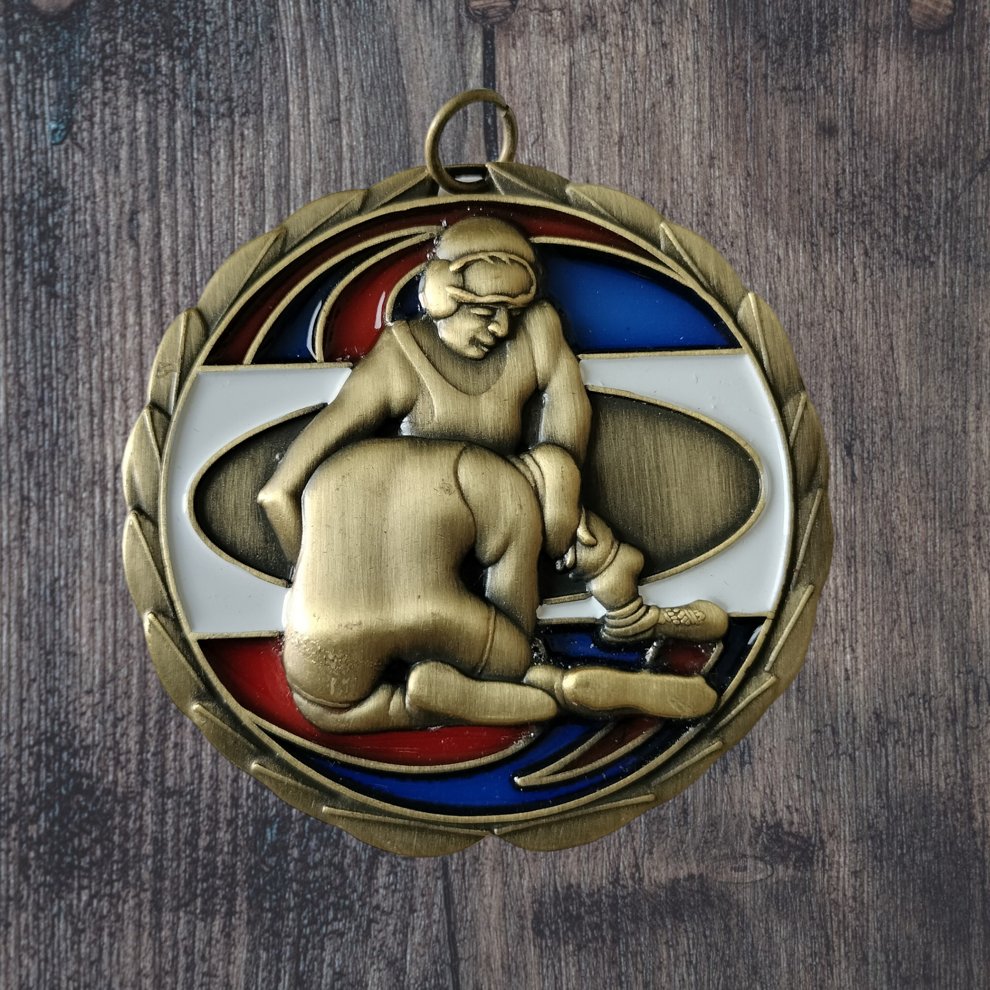 This wrestling medal features a highly-durable resin accents that keeps the image looking vibrant and clear. With a 3-dimensional glossy finish, it will make an eye-catching keepsake for any wrestler.